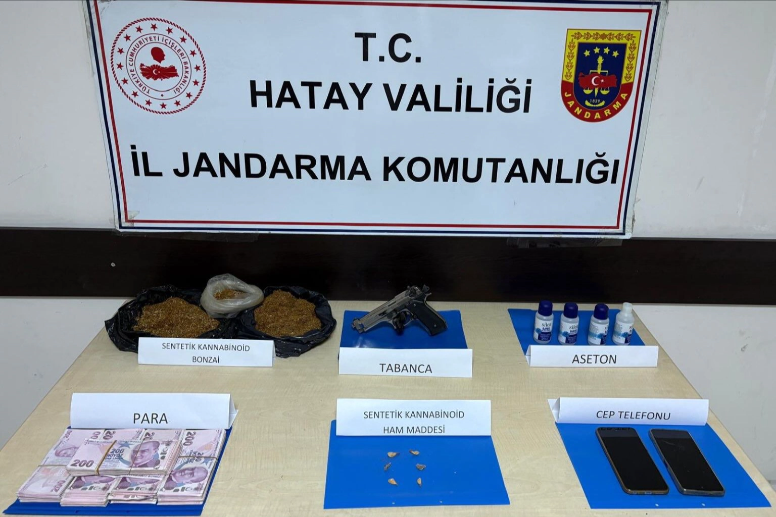 ✅ 2500 gram sentetik kannabinoid ✅ 10 gram sentetik kannabinoid hammaddesi ✅ 4 adet aseton ✅ 101.800 TL nakit para ✅ 1 adet ruhsatsız tabanca ✅ 2 adet cep telefonu ele geçirildi.