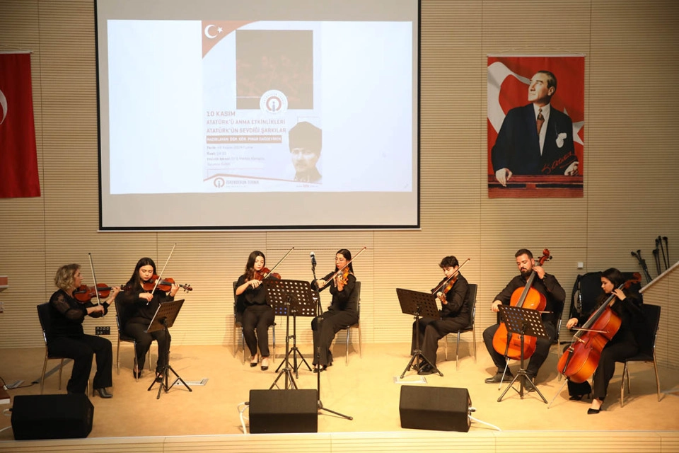 Üniversite Rektör Yardımcılarının yanı sıra dinletiye Doç. Dr. Aytemis Depci ile İSTE akademik ve idari personeli ve öğrenciler katılım gösterdi. MYDK Öğr. Gör. Pınar Dağdeviren’in yönettiği “Atatürk’ün Sevdiği Şarkılar” adlı özel müzik dinletisinde öğrenciler Vardar Ovası, Bülbülüm Altın Kafeste, Çökertme gibi eserleri seslendirdi. Gazi Mustafa Kemal Atatürk sevdiği şarkılarla bir kez daha saygı, sevgi ve minnetle anılmış oldu. Rektörümüz Prof. Dr. Tolga Depci "Ebediyete intikal etmesinin üzerinden 86 yıl geçse de biz hala ilk günkü gibi aynı özlemle Ata’mızı anıyoruz. " dedi.