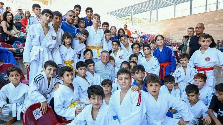 Başkan Savaş, müsabakada dereceye giren sporculara madalyalarını verirken Türkiye Judo Federasyonu Merkez Hakem Kurulu Başkanı Doğan Korkmaz’a da plaket takdim etti.