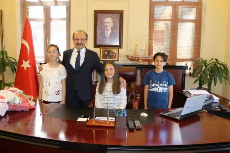 23 Nisan Ulusal Egemenlik ve Çocuk Bayramı’nın 96’ncı yıl dönümü kutlama programı kapsamında; İskenderun Yunus Emre Ortaokulu 6.sınıf öğrencisi Ali Can Gökalp, 5.sınıf öğrencisi Beyza Temir ve Ülkü Ceren Apraş ile İlçe Milli Eğitim Müdürü Ahmet Güven, Yunus Emre Ortaokulu Müdürü Cihangir Kaya ve Türkçe Öğretmeni Hatice Çağı tarafından İlçemiz Kaymakamı H. Hasan Özyiğit’e ziyarette bulundular. Kaymakamlık makamında gerçekleşen ziyaret esnasında, İlçemiz Kaymakamı H.Hasan Özyiğit 23 Nisan Ulusal Egemenlik ve Çocuk Bayramı münasebetiyle makam koltuğunu 5.Sınıf öğrencisi Beyza Temir’e devretti. Kaymakam makamını devralan sembolik Kaymakam Beyza Temir; Duygu ve düşüncelerini ifade etmek üzere makam koltuğunu kendisine devreden Kaymakam H.Hasan Özyiğit’e teşekkür ederek konuşmasına başladı. Sembolik Kaymakam Beyza Temir; Günün anlam ve önemine ilişkin mesajını paylaşarak, Bu anlamlı günün, Türkiye Cumhuriyeti’nin aydınlık yarınlarının teminatı olarak görülen çocuklarımıza armağan edilmesinin kendilerine verilen değeri ifade ettiğini ve bu değerin farkındalığında kendilerine düşen görev ve sorumlulukları yerine getireceklerini dile getirdi. Cumhuriyetimizin temel kurumlarından Türkiye Büyük Millet Meclisi'nin açılışının 96’ncı yılını kutlamanın coşkusunun ve mutluluğunun hep birlikte yaşanıldığını dile getiren Kaymakam Özyiğit; Çocuklarımızın insanlığın ortak umudu, geleceği ve en önemli hazinesi olduğunu, gelecekte üst makamların çocuklarımız tarafından doldurulacağını ve bu nedenle umudumuz, en önemli zenginliğimiz olan çocuklarımıza sahip çıkmanın, geleceğimize sahip çıkmak anlamına geldiğini söyledi. Bu anlamlı gün vesilesiyle kendisine yapılan ziyaret nedeniyle çok memnun olduğunu ifade ederek, günün anısına birer hediye veren Kaymakam Özyiğit; “Sevgi dolu yürekleri ve gülen yüzleriyle bugüne anlam katan çocuklarımızın ve aziz milletimizin “Ulusal Egemenlik ve Çocuk Bayramı”nı en içten dileklerimle kutluyor, çocuklarımızın geleceğe hazırlanmasında onlara verdiği destek ve yönlendirmeleriyle müspet katkılarda bulunan çok değerli öğretmenlerimiz ile kıymetli velilerimize de ayrıca teşekkürlerimi iletiyorum” dedi.