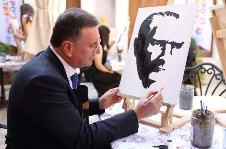 Selma Uçar Sanat Atölyesi ve EXPO gönüllüleri ile birlikte Atatürk siluetini boyayan Başkan Savaş, etkinlikte yapılan boyama çalışmalarını da yakından inceledi.