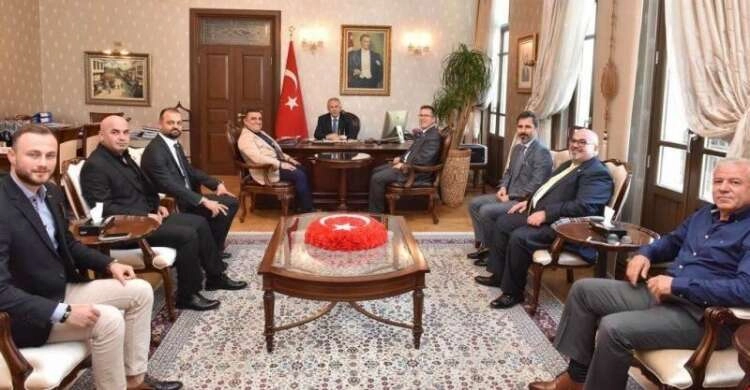 Arsuz İş Adamları Derneği Başkanı Adnan Ağır ile Doğu Akdeniz Sanayici ve İş Adamları Dernekleri Federasyonu (DASİFED) Başkanı Mehmet Kılıçlar’ın da aralarında bulunduğu heyet Hatay Valisi Erdal Ata’ya nezaket ziyaretinde bulundular.