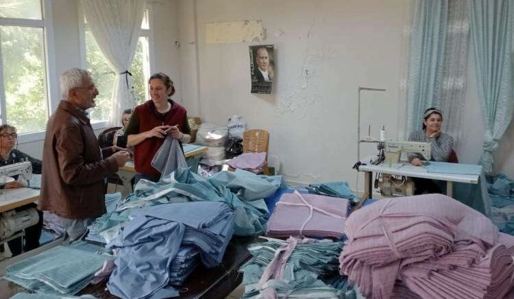 Arsuz Belediyesi, Kadın Dayanışma Vakfı ve S.S Arsuz Kadın Girişimi Üretim ve İşletme Kooperatifi işbirliği ile hem depremzede kadınlara iş imkânı sağlamak, hem de ihtiyacı olan vatandaşlara dağıtılmak üzere, Arsuz esnafının da desteklenmesi amacıyla malzemelerin esnaftan alındığı, yastık kılıfı ve çarşaf dikimi gerçekleştiriliyor.