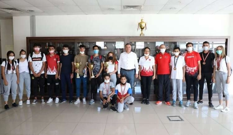 Hatay Büyükşehir Belediyespor Atletizm Takımı sporcuları ve antrenörleri 10 Ağustos Pazartesi günü Hatay Büyükşehir Belediye Başkanı Doç. Dr. Lütfü Savaş’ı ziyaret ederek üstün başarıları neticesinde aldıkları kupaları takdim etti. Hatay’ın adını spor alanında zirveye taşımak için büyük çaba harcayan Başkan Savaş, bu kez de atletizm sporcularının başarılarıyla gururlandı.