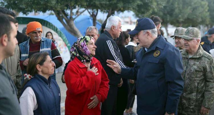 Burada vatandaşlarla bir araya gelen Bakan Akar’a depremzedeler, askerî kampların kendilerine açılmasından duydukları memnuniyeti dile getirdiler. “Çok teşekkür ediyoruz, bize her şeyi unutturdunuz. Allah sizleri var etsin, Allah devletimize zeval vermesin.” ifadelerini kullanan vatandaşlara Bakan Akar, “Devlet millet el ele, omuz omuza, bu yaraları hep beraber saracağız. Devlet, millet olarak bir ve beraberiz.” karşılığını verdi.