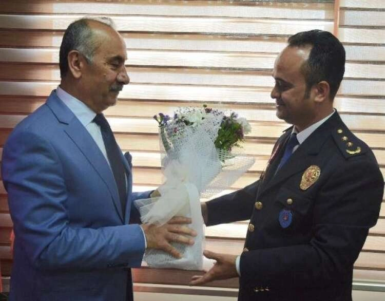 Arsuz Belediye Başkanı Nazım Culha, Polis Teşkilatının 173. Kuruluş Yılı ve Polis Haftası sebebiyle Arsuz İlçe Emniyet Müdürü Halil Karabacak’ı makamında ziyaret ederek, çiçek takdim etti.