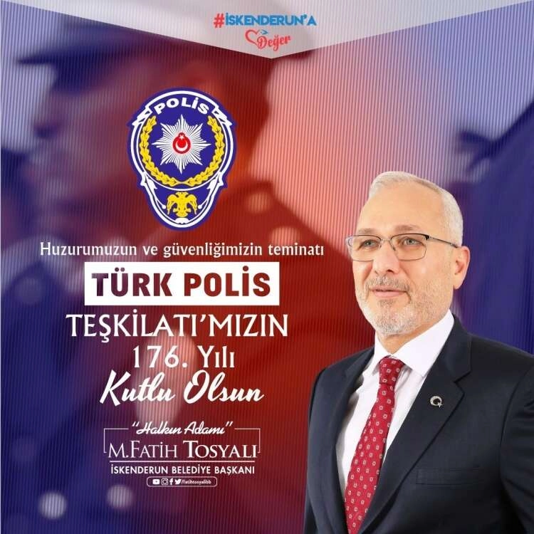 "Her bir köşesinde huzur ve güvenliğin sağlanması, vatandaşlarımızın temel hak ve hürriyetlerinin korunması gibi görevleri başarıyla yerine getiren Türk Polis Teşkilatının 176. Kuruluş yıldönümü ve 10 Nisan Polis Haftası kutlu olsun.