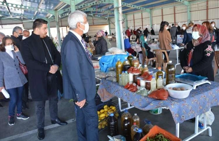 Tekrar toparlanmak gerektiğini belirten Başkan Güven, “Bu iş sizin uğraşınız ve özverinizle olan bir iş. Biz sadece destek veriyoruz. Karınca kararınca gücümüzün yettiği kadar destek vermeye çalışıyoruz. Destek devam edecek. Daha önce konuşmuştuk ama Covid araya girince yapamadık. Şu an her türlü çalışması bitti. Normal şartlarda devletin, kanunun belirlediği şartlara ait ve bu işi yapan kadınlarımıza biz belediye olarak destek vereceğiz. Onun için arkadaşlarla iletişime geçin. Gerekli belgeleri sağlayan, ihtiyaç sahibi ve bu işi yaptığını belgeleyen emekçilerimize destek olacağız. Çünkü belediyeye ait olan para, kişinin, kişisel parası değil, halkın parasıdır. Azimle devam edin, yanınızdayız. İnşallah bu korona daha da azalır ve daha rahat ve sağlıklı bir ortamda devam ederiz,” şeklinde konuştu. Ardından stantları gezen Başkan Asaf Güven, kadınların talep ve sıkıntıları tek tek dinledi.