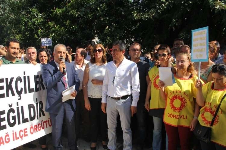 Samandağ CHP İlçe Örgütü açığa alınan eğitim emekçisi öğretmenlerin görevlerine geri dönmeleri ile ilgili destek verdi.