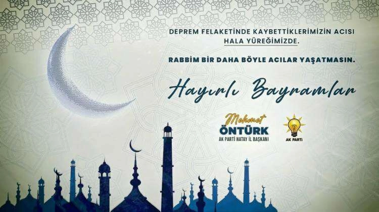 Bu vesile ile memleketimiz Hatay başta olmak üzere, deprem felaketinde hayatını kaybetmiş tüm vatandaşlarımıza Allah’tan rahmet, kederli ailelerine baş sağlığı, henüz tedavisi sürenler için ise geçmiş olsun dileklerimi sunuyor, Allah’tan acil şifalar diliyorum. Bu duygu ve düşüncelerle tüm İslam Alemi’nin ve hemşehrilerimizin Ramazan Bayramı’nı tebrik eder, bu bayramın birlik ve beraberliğimize, dayanışmamızın pekişmesine ve kardeşlik bağlarımızın daha da güçlenmesine vesile olmasını dilerim. Ramazan bayramımız mübarek olsun”