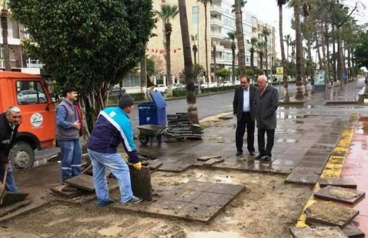 Başkan Seyfi Dingil,”Park Bahçe müdürlüğüne bağlı ekiplerimiz şiddetli lodosun oluşturduğu dalgalar nedeni ile bir bölümü yıkılan ve tahrip olan sahil yürüyüş bandındaki duvarın tamirat işlemlerini gerçekleştiriyor. Sahil bandı vatandaşlarımız tarafından yoğun bir şekilde kullanılan bir bölge. Bölgemizde zaman zaman etkili olan şiddetli fırtına lodos ve fırtınadan dolayı sahil bandımıza zarar veriyor. Ekiplerimizde gerekli tadilat, bakım ve temizlik çalışmalarını hemen yapıyor” dedi. Doğan gazinosu önünde tahrip olan ve çeşitli nedenlerle kırılan andezit taşlarının tamiratını yaptıklarını belirten İskenderun Belediye Başkanı Seyfi Dingil,”Bu yer ile ilgili sürekli halkımızdan şikayetler geliyordu.HBB’nin sorumluluk alanında olmasına rağmen yoğun olarak kullanılan bu yer ile ilgili belediye olarak ekiplerimiz hemen çalışma başlatarak yaşanan sıkıntıyı giderdi.Belediye olarak halkımızın her zaman emrindeyiz.Vatandaşların bizlere gelen taleplerini belediyemizin imkanları ölçüsünde çözüme kavuşturuyoruz” diye konuştu.