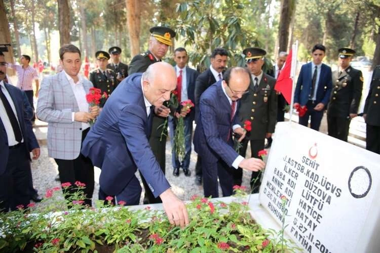 Şehitlerin kabrine karanfil bırakarak, dua eden Belediye Başkanı Seyfi Dingil, şehit ailelerinin acısını paylaştı. Karaağaç Asri Mezarlık’taki şehitlik ziyaretine, İskenderun Kaymakamı H.Hasan Özyiğit, İskenderun 39. Mekanize Piyade Tugay ve Garnizon Komutanı Tuğgeneral Erkan Olgay, İskenderun Belediye Başkanı Seyfi Dingil, İskenderun Deniz Üs Komutanı Tuğamiral Aykar Tekin, belediye meclis üyeleri, siyasi parti yöneticileri, askeri ve sivil protokol üyeleri, şehitlerin yakınları ve gaziler katıldı. Şehitlikteki ziyarette ilk olarak saygı duruşunda bulunuldu istiklal marşı okundu. Ardından Kur-an-ı Kerim okundu ve şehitlerimiz için dua edildi. Belediye Başkanı Seyfi Dingil ve diğer protokol üyeleri, şehitlikte, şehitlerin kabrine karanfil bıraktı ve ailelerin acısını paylaştı. Belediye Başkanı Seyfi Dingil, şehit aileleriyle yakından ilgilendi.