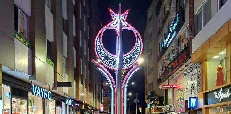 Çarşı Merkezine Ay Yıldızlı Led Aydınlatma