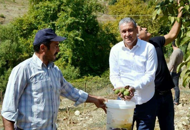 Başkan Gül; “Üç yıl önce diktiğimiz fidanların bulunduğu Benlidere Ceviz Bahçemizde bu gün itibariyle arkadaşlarımızla birlikte ürün hasadını yapmaya başladık. Üç yıl önce hatırlayacağınız üzere bu araziler çalılık, atıl ve kullanılmayan bir araziydi. Bizler üretime katkı vermek adına, Belen Belediyesi olarak aldığımız kararlar doğrultusunda, tüm atıl arazilerimizi üretime katmak istedik. Bunlardan biri de Benlidere mahallemizde bulunan 65 dönüm arazi üzerine 1700 adet aşılı ceviz ekerek bahçemizi, verimli hale getirdik. Şu an görmüş olduğunuz ürünler, bizim ürünlerimiz. Şimdi ise hasadına başladık. Bizler Belen Belediyesi ailesi olarak, elimizden gelen gayreti göstererek, bünyemizde bulunan tüm arazileri verimli bir şekle getireceğiz inşallah.” İfadelerini kullandı.