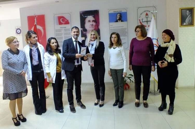 Başkan Çakmaklı, beraberindeki heyet ile Bilim Koleji Kurucu Müdürü Salih Yazgan ve Kolejin Müdür Yardımcısı Gülay Yazgan’a plaketlerini sunarak katkılarından dolayı teşekkürlerini dile getirdi. Plaket sunulan ziyarette, Başkan Zeynep Çakmaklı, Yönetim Kurulu üyeleri Münübe Taş, İlhan Duraltı, Suzan Bıçakçı, Derneğin Kurucu üyesi Serpil Korkmaz, Kolejin idareci ve öğretmenler, hazır bulundu. Dernek Başkanı Zeynep Çakmaklı ve yönetim kurulu üyeleri, Bilim Koleji idareci ve öğretmenlerle, dernek çalışmaları ve kolej ile ilgili yapılan samimi sohbetler edildi. Bilim Koleji Kurucu Müdürü Salih Yazgan ve Kolejin Müdür Yardımcısı Gülay Yazgan, “Çocuklarınız ile sohbet etme fırsatı bulan gençlerimiz dernek çalışmalarını yakından tanıma fırsatı buldu.” Dedi. Başkan Çakmaklı ise; “Öğretmenlerimizin ve öğrencilerinizin yakın ilgisi ziyaretleri ve destekleri bizleri mutlu etti. Bizlerde derneğimize katkılarınızdan dolayı sizlere teşekkür ediyoruz. Sizler gibi duyarlı öğretmenlerimiz ve öğrencilerimiz, topluma örnek oluşturuyor.” dedi.
