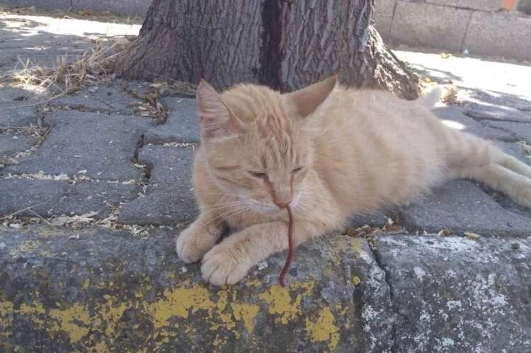 Çevre Koruma ve Kontrol Müdürlüğüne bağlı ekipler kediye zarar vermeden yılanı kedinin burnundan çıkarttı.