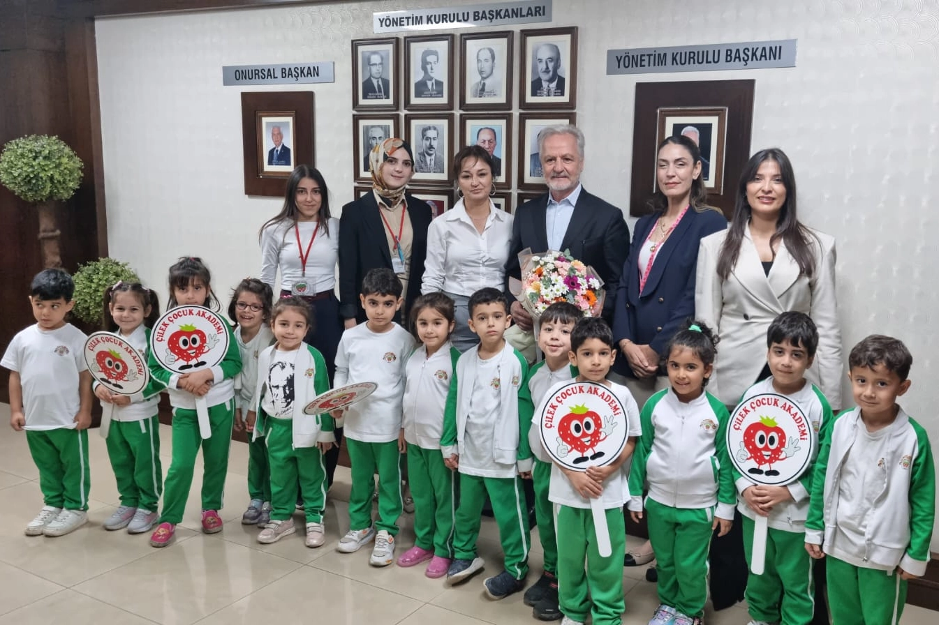 İTSO Yönetim Kurulu Başkanı Levent Hakkı Yılmaz, 23 Nisan Ulusal Egemenlik ve Çocuk Bayramı etkinlikleri kapsamında ziyarete gelen Çilek Kreş yönetimi, öğretmenleri ve öğrencilerine teşekkür etti.