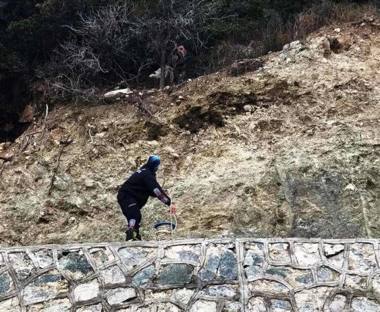 HBB İtfaiyesi aynı zamanda Çevlik-Arsuz yolu üzerindeki dağ yamacında mahsur kalan bir köpeği kurtardı.
