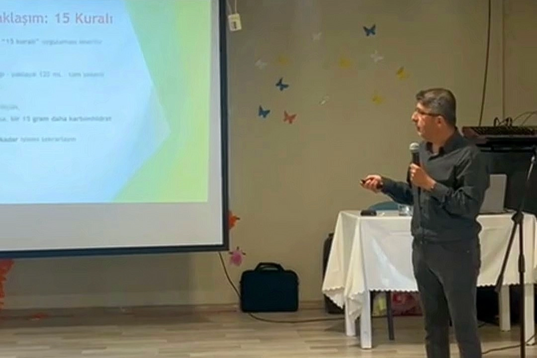 Etkinlikte davetli konuşmacı olarak yer alan Doç. Dr. Kemal Ağbaht, “Diyabetle Yaşamak: İşte, Okulda ve Özel Durumlarda Karşılaşılan Sorunlar ve Çözümleri” başlıklı sunumunda diyabetli bireylerin yaşam kalitesini artırmaya yönelik önemli bilgiler paylaştı.