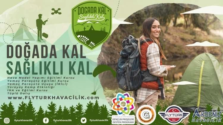 “DOĞADA KAL SAĞLIKLI KAL” isimli proje kapsamında hava modeli eğitimi (model Uçak), İnsansız Hava Aracı (drone) eğitimi, yamaç paraşütü eğitimi verilerek aynı zamanda yamaç paraşütü tandem (ikili uçuş) faaliyeti, discovery dalış faaliyeti, Türkiye yamaç paraşütü hedef şampiyonasında kamp etkinliği ve projeye katılan tüm katılımcılar ile doğa yürüyüşü faaliyeti gerçekleştirilecek.