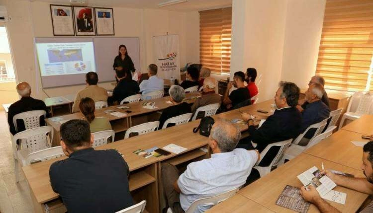 Erzin HATMEK binasında düzenlenen eğitimlerde, Hatay’daki turunçgil çeşitliliği, fidan yetiştiriciliği, gıda sektörü ve güvenliği, geleneksel gıdalar hakkında bilgiler verildi.