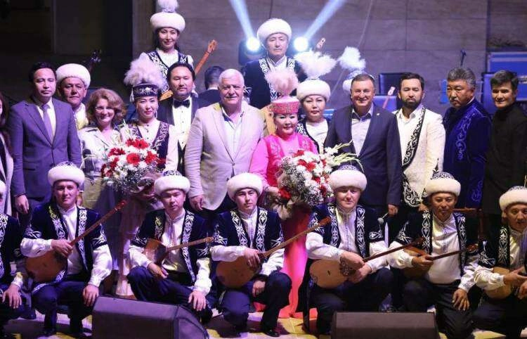 Şef Yerlan Baktıgerey’in yönettiği orkestra ve sanatçıların söylediği kıymetli eserler davetlilerden büyük alkış aldı.