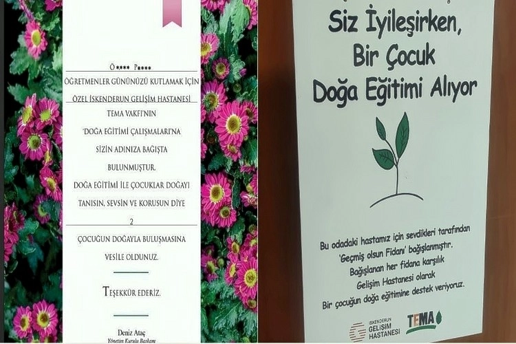 Hastanede yatan öğretmenler, yapılan bağışla hem doğaya hem de eğitime destek sağlanacağı için büyük mutluluk yaşadıklarını ifade ettiler.