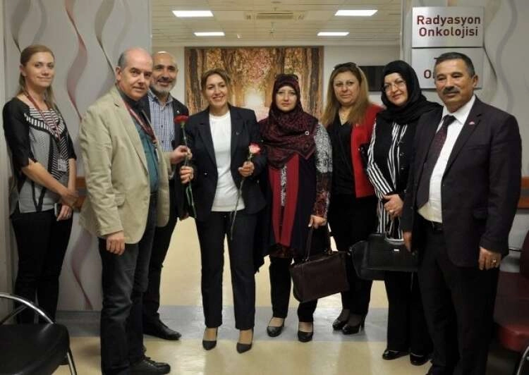 Milliyetçi Hareket Partisi (MHP) İskenderun İlçe Teşkilatı Kadın Kolları Başkanı Fatma Kaya ve yönetim kurulu üyeleri, 1-7 Nisan Kanser Haftası dolayısıyla İskenderun Gelişim Hastanesi Başhekimi Dr. Ömer Suha Caymaz’ı ve Onkoloji Merkezi’nde tedavi gören hastaları ziyaret etti.