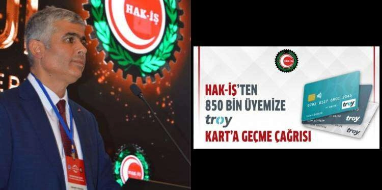 ''Konfederasyon başkanımız Sayın Mahmut ASLAN başkanlığında GAZZE gündemi ile ilgili il başkanları toplantısı gerçekleştirdiklerini ifade etti.Konfederasyon başkanımız Sayın Mahmut Aslan yaptığı açıklamada siyonist İsrail’in yaptığı katliamlara sessiz kalmadıklarını bu konuda konfederasyon olarak Gazze’ye her türlü maddi yardımı yaptıklarını ve yapmaya devam edeceklerini ifade etti.Konfederasyon başkanımız İsrail yanlısı tüm ürünleri boykot etme çağrısını yineleyerek mevcut banka kartları konusunda yerli ve milli olan TROY karta geçme çağrısında bulundu.Güngör;HAK-İŞ Konfederasyonu olarak, üye sendikalarımıza, sendikalarımızın çalışanlarına, 850 bin üyemize, üyelerimizin ailelerine ve milletimize Gazze’de yaşanan vahşet ve soykırıma karşı durmak adına diğer kart sistemleriyle eşit imkanlara sahip olan yerli ve milli sistemimiz olan TROY’a geçiş yapmaları konusunda çağrıda bulunuyoruz dedi. Haydi, büyük HAK-İŞ ailesi, hassasiyetinize güveniyoruz. Yerli ve milli ödeme sistemimiz TROY ile Gazzeli kardeşlerimizin yanında olalım. Kartınız hangisi olursa olsun, sağ alt köşesinde TROY olsun.”