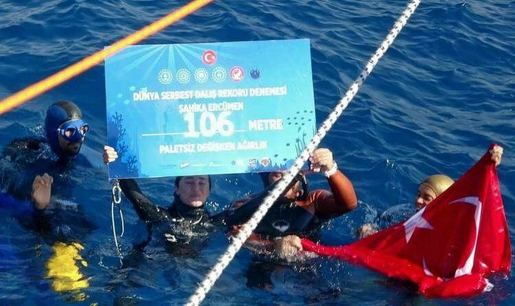 Dalış hazırlıklarından sonra başlayan programa protokol konuşmalarıyla devam edildi. Vali Masatlı, sporun önemine dikkat çekerek “ Yayladağı ilçemizin yeni turizm merkezi olması ilimiz için önemli bir kazanım. Hatay’ımızın artık, deprem gündeminden yavaş yavaş uzaklaşarak normalleşmeye doğru gitmesi gerekir. Böylece gündem farklılaştıkça ilimizde yaşam daha moral verici olacaktır. Bu demek değildir ki yaşadığımız afeti unutalım; tabi ki unutmayacağız. Depremin yaralarını sarmaya hiç durmadan devam edeceğiz. Bundan böyle depremi değil kültürümüzü, sporumuzu, eğitimimizi, turizmimizi öne çıkarıp bunları konuşmalıyız.”dedi. Hatay’ımızın depremden önce de stratejik bir konuma sahip olduğuna değinen Valimiz, “İlimiz konumunun yanında doğası, turizmi, kültürü ve daha birçok yönden de büyük bir öneme haizdir. Bundan böyle bu yönlerini de daha çok öne çıkaracak organizasyonlarla hem deprem gerçeğini unutturmayacak hem de buraya dünyanın dikkatini çekecek çalışmaların yapılması elzemdir.” dedi. Devletimiz de her türlü sportif faaliyetlere gereken desteği vermiştir ve vermeye de devam etmektedir, diyen Valimiz,sporun her zaman iyileştirici, birleştirici, tanıtıcı gücü olduğuna ve Cumhuriyetimizin 100. yılında da bu gücün iyi kullanılması gerektiğinin altını çizdi. Hatay Nefes Ol sloganıyla yapılan bu etkinliğin organizasyonunda emeği geçen Kaymakamımıza, Belediye Başkanımıza ve diğer çalışanlarımıza teşekkür eden Valimiz, Hatay’ımız için nefes olmak adına yanımızda olan ve bu rekor ile 100 kız çocuğumuza spor ve eğitim bursu verecek Şahika ERCÜMEN Hanımefendi’ye de bilhassa şükranlarımı sunuyorum." dedi. Millî Sporcumuz Şahika ERCÜMEN de Valimize ve emeği geçen herkese teşekkür etti. “Millî sporcu olarak depreme maruz kalan bölgelerde ‘ne yapabilirim?’ diye düşündüm 100 kız çocuğumuza eğitim ve spor bursu sağlanmasına katkı sunmak istediğini belirtip “Nefesimi Hatay için tutacağım.” dedi. Ardından VTR yayımı yapıldı ve dalış rekoru canlı yayın bağlantısı yapıldı. Şahika ERCÜMEN, büyük bir başarı göstererek alanında dünya rekorunun yeni sahibi oldu. Dalış sonrasında Vali Masatlı, Cumhuriyetimizin 100. yılına ithafen gerçekleştirilen bu anlamlı ve önemli denemede gösterdiği başarılarından dolayı Millî Gururumuz Şahika ERCÜMEN’i tebrik etti.