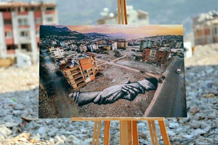 Fransız Sanatçı Saype, Duvarların Ötesi’nde projesi kapsamında 6 Şubat’ta yaşanan Kahramanmaraş merkezli depremlerden en çok etkilenen Hatay'daki yıkıma ve bölgede gösterilen birlikteliğe dikkati çekmek amacıyla Hatay’a gelerek Defne, Altınözü ve Antakya ilçelerindeki eserlerini tamamladı.