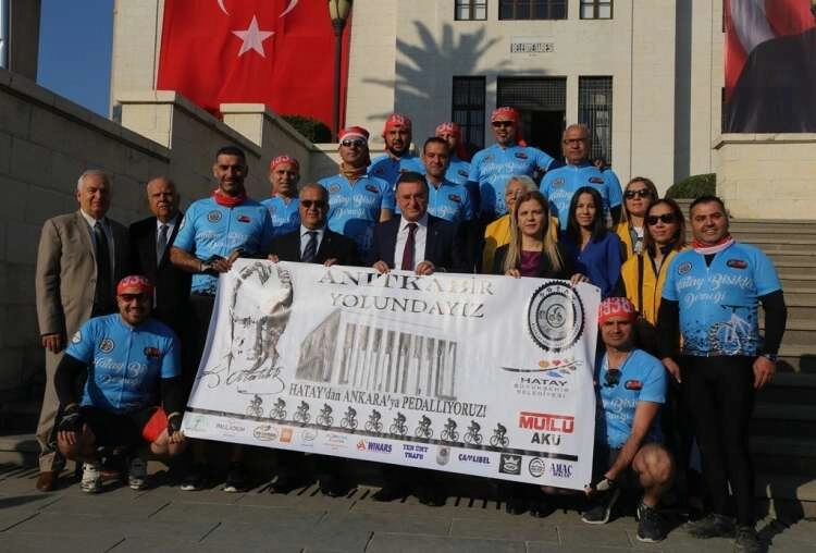 Bisiklet tutkunları, 5 Kasım Salı günü Hatay Büyükşehir Belediyesi(HBB) önünden törenle Anıtkabir’e uğurlandı. Törene, HBB Başkanı Doç. Dr. Lütfü Savaş’ın yanı sıra HBB daire başkanları ve personelleri katılım gösterdi.