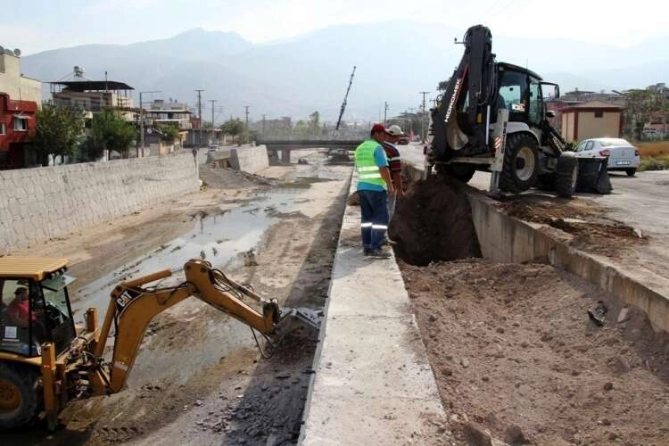 İskenderun ilçesinde bulunan Feyezan Kanalı’nın Dumlupınar Mahallesi’nden Sakarya Mahallesi’ne kadar uzanan kısmında çalışma yapan HATSU, Feyezan Kanalı’nın betonarme yapılması ile tepe mahallelerinden gelen yağmursularının deşarjının sağlandığı giderlerin kapandığını ve kepçe yardımı ile toplamda 18 tane yağmursuyu giderinin açıldığını belirtti