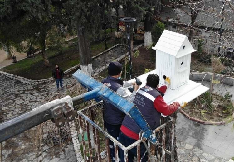 Minik öğrencilerin hayallerindeki kedi ve kuş yuvalarını, geri dönüşüm malzemeleri ile oluşturan HBB Park Bahçe ve Yeşil Alanlar Dairesi Başkanlığı ekipleri, yuvaları Antakya’daki parklara yerleştirdi.