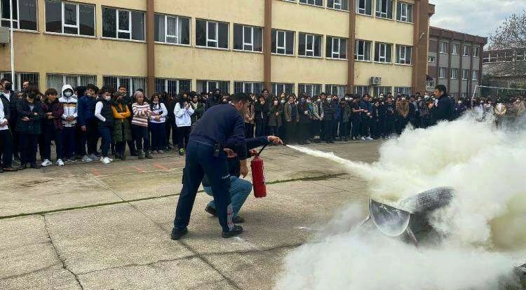 Büyükşehir İtfaiye Daire Başkanlığı ekipleri, il genelindeki öğretim kurumları ve kamu kurum kuruluşlarına olası yangın ve afet durumlarında ne yapılması gerektiğini verdikleri eğitim ve tatbikatlarda detaylı olarak anlattı.