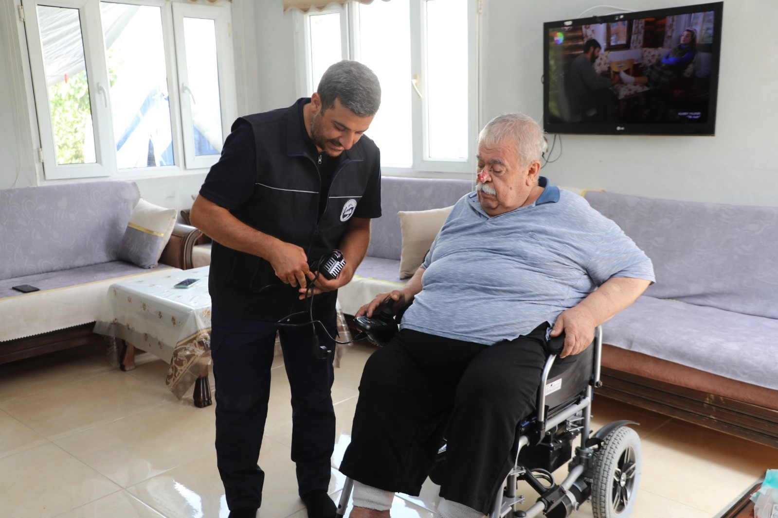 Sağlık ve Sosyal Hizmetler Dairesi ekiplerinden tekerlekli sandalyelerini teslim alan vatandaşlar HBB Başkanı Mehmet Öntürk’e teşekkür etti.