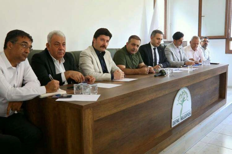 Turunçlu Mahallesi’ndeki Defne Evi’nde yapılan toplantıya HBB Genel Sekreteri Nihat Tazearslan, HATSU Genel Müdürü M. İkbal Polat, HBB ve HATSU daire başkanları ve şube müdürleri ile Defneli mahalle muhtarları katıldı.