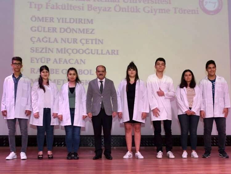 Yapılan konuşmaların ardından hekim adayları önlüklerini giydi.