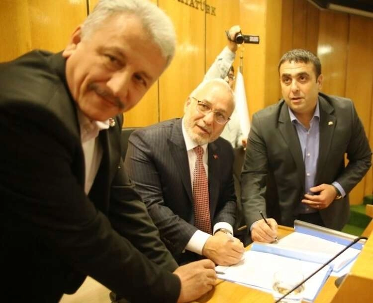 Son olarak İskenderun Belediyesi’nde çalışan memurların yararlandığı Sosyal Denge Sözleşmesi’ni İskenderun Belediye Başkanı Fatih Tosyalı, Bem-Bir-Sen Hatay İl Başkanı Murat Başar, Memur-Sen Hatay İl Başkanı Hasan Urhan, imzaladı.