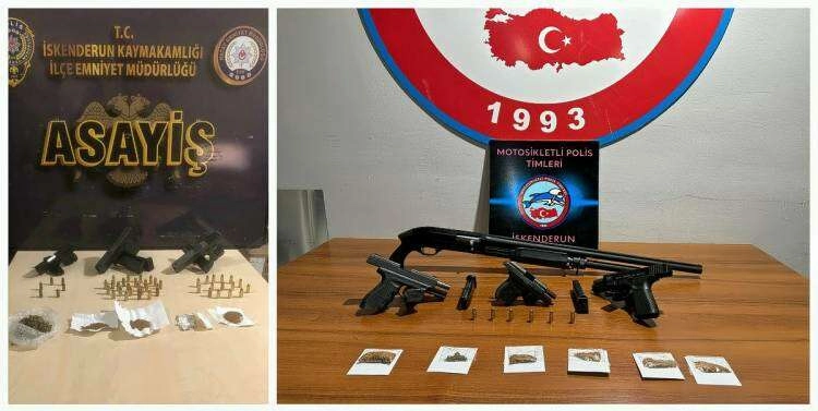 Yapılan aramalarda; 7 adet ruhsatsız tabanca, 5 adet şarjör, 52 adet fişek, 20 gram esrar, 4 gram metamfetamin, 10 gram kannabinoid ele geçirildi.