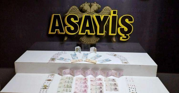 Masada bulunan 1965 TL para ve 52 adet iskambil kağıdı ele geçirilildi.