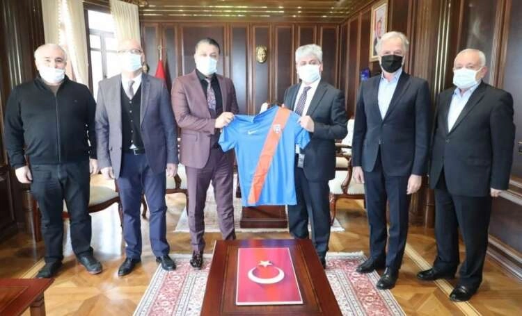İskenderunspor Kulübü Başkanı Aziz Yıldız, ziyaretin anısına Hatay Valisi Rahmi Doğan’a isminin yazılı olduğu 58 numaralı turuncu mavili formayı hediye etti.