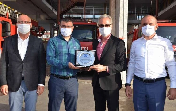 Ziyaret sonunda İTSO Başkanı Levent Hakkı Yılmaz HBB 2.Bölge İtfaiye Şube Müdürü Ahmet Serhat Beydilli’ye teşekkür plaketi takdim etti.