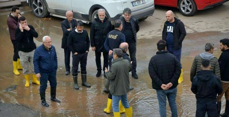İskenderun Kaymakamı Murat Sefa Demiryürek, İskenderun Belediye Başkanı Fatih Tosyalı, İskenderun Ticaret ve Sanayi Odası Yönetim Kurulu Başkanı Levent Hakkı Yılmaz, sahil boyunda devam eden su tahliye çalışmalarını yerinde incelediler.
