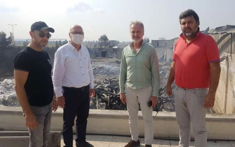 İskenderun Ticaret ve Sanayi Odası Başkanı Levent Hakkı Yılmaz ve İTSO Başkan yardımcısı Muhsin Yeter, hafta sonu Belen İskenderun ve Arsuz’da meydana gelen orman yangınında iş yerleri yanan üyeleri ziyaret ederek fabrikada incelemelerde bulundular.