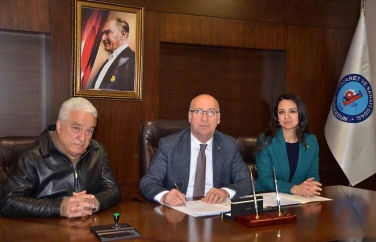 Mutabakat Protokolü imzalarının atılmasının ardından İskenderun Mesleki ve Teknik Anadolu Lisesi müdürü Yusuf Yıldırım’da İTSO yönetimine desteklerinden dolayı teşekkür ederek, okul öğrencilerinin Ahşap Si ensi makinasında hazırladıkları Atatürk tablosunu hediye ettiler.
