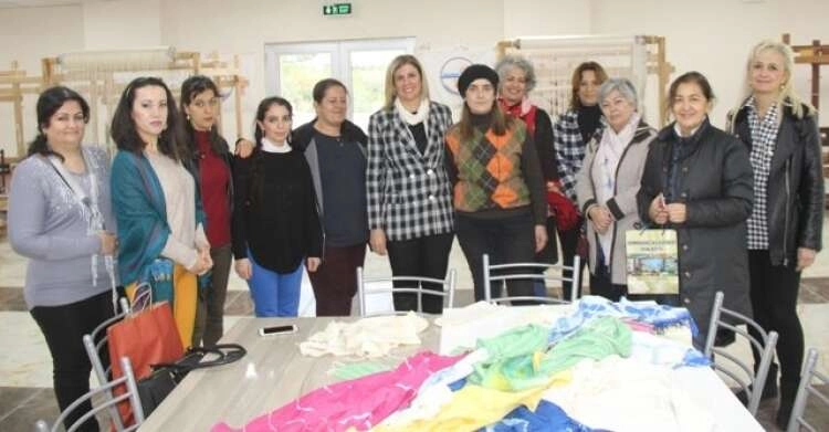 Aktivist Kadınlar İpek köyüne ve Samandağlı kadınlar tarafından yapılan şallara hayran kaldılar.