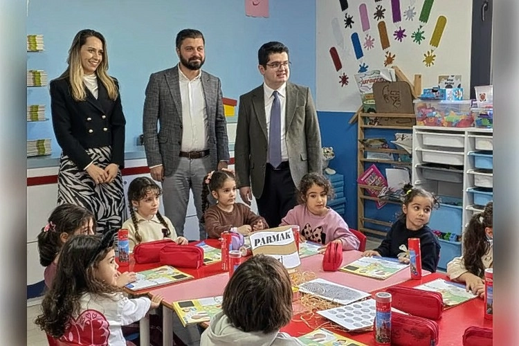 Ziyaret kapsamında sınıfları inceleyen Kaymakam Eroğlu, yetkililerden bilgi alarak çocuklarla bir süre vakit geçirdi.