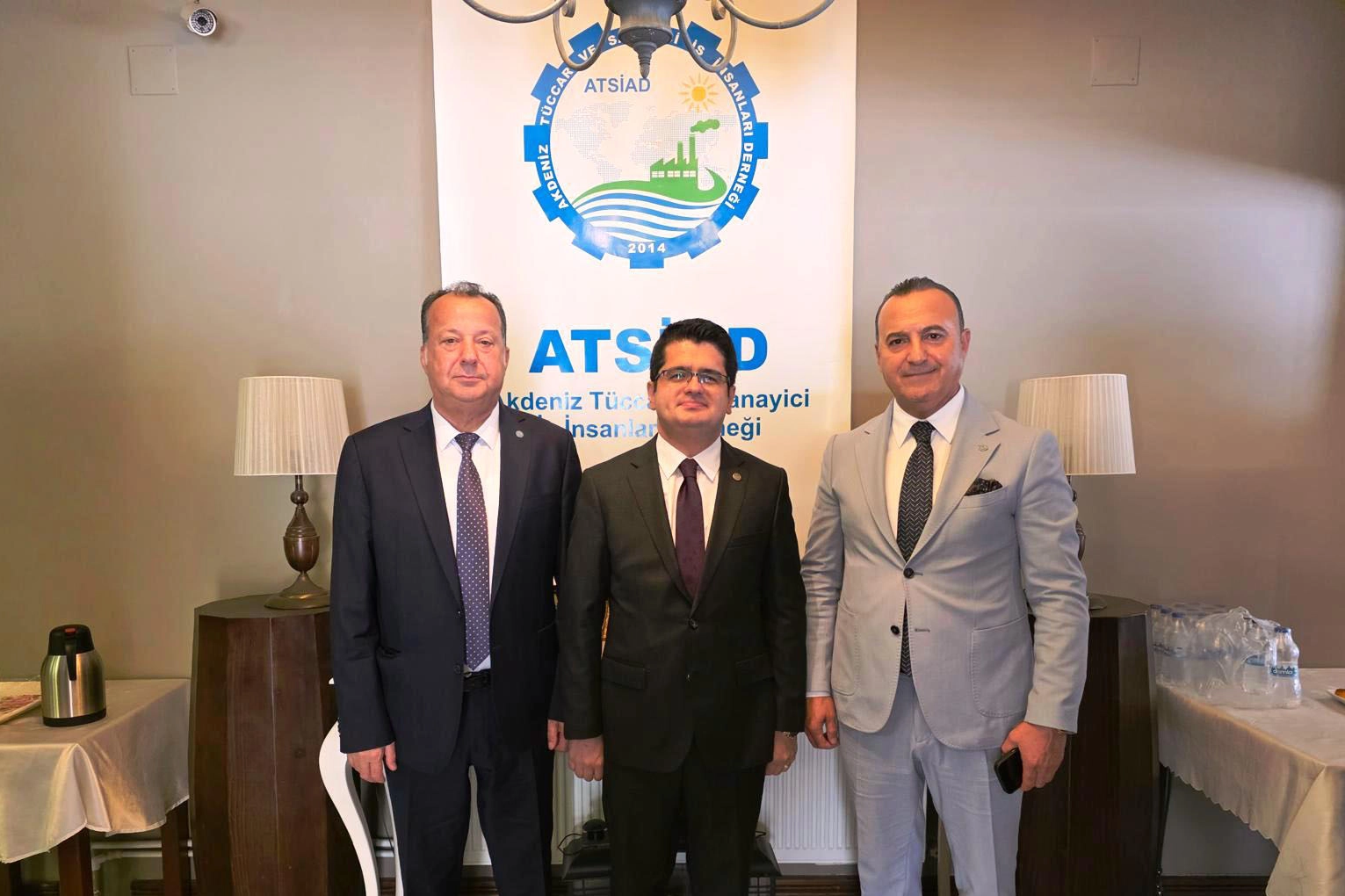 Arsuz Kaymakamı Fatih Eroğlu, ATSİAD Başkanı Mithat Ceritbinmez, yönetim kurulu ve dernek üyeleri tarafından dernek merkezinde ağırlandı. Nezaket ziyaretinde ilçenin altyapı sorunları, yol ve kavşak düzenlemeleri, deprem sonrası yapımı tamamlanan TOKİ konutlarının teslim süreci, şehir güvenliği, otogar yapımı ve küçük sanayi sitesi projeleri ele alındı. Görüşmede ayrıca Arsuz’un turizm potansiyelinin artırılması amacıyla MilyonFest, triatlon, su sporları, yelken, sörf, koşu ve bisiklet maratonları gibi spor etkinliklerinin yanı sıra müzik konserleri ve kültürel organizasyonlarla kentin cazibe merkezi haline getirilmesi yönünde fikir alışverişi yapıldı. Başkan Ceritbinmez, “Hoş sohbet ve soru-cevap şeklinde geçen ziyaretlerinden dolayı Arsuz Kaymakamı Sayın Fatih Eroğlu’na teşekkür ediyor, yeni görev yerleri olan Arsuz iİlçemizde üstün başarılar diliyoruz” dedi. Arsuz Kaymakamı Fatih Eroğlu ise misafirperverliklerinden dolayı ATSİAD Başkanı Mithat Ceritbinmez’in şahsında ATSİAD ailesine teşekkür etti.