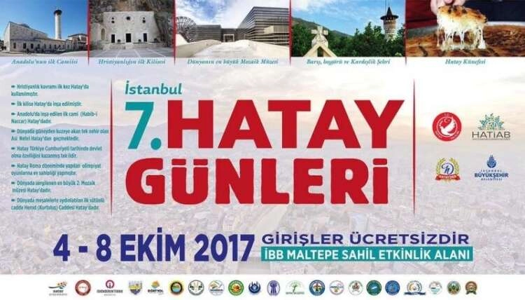 Hatay Valiliği, Hatiab, Hatayder ve İstanbul Büyükşehir Belediyesinin organizesi ve Hatay İlçe Belediyelerinin destek ve katılımlarıyla 4-8 Ekim 2017 tarihleri arasında İstanbul-Maltepe Etkinlik alanında bu yıl 7.cisi düzenlenecek olan Hatay Günleri fuarında Barış, Hoşgörü ve Kardeşlik şehri Hatay’ın tarihi, kültürel zenginlikleri ve eşsiz mutfak lezzetleri hemşerilerimizle buluşuyor. İstanbul’daki Hatay Günleri Fuarında; Hatay‘ı, kültürümüzü, kardeşlik ve hoşgörü ortamımızı, tarihimizi, medeniyetimizi, yerel yönetimlerimizi, üniversitemizi, sivil toplum kuruluşlarımızı, yöresel ürünlerimizi, binlerce yıllık geçmişi bulunan mutfağımızı kısaca sahip olduğumuz tüm değerlerimizi Türkiye ‘ye tanıtılarak, Ulusal Arenaya taşınması hedefleniyor. Kırıkhan Belediye Başkanı Ayhan YAVUZ yaptığı açıklamada; “İstanbul-Hatay Günlerinde ilçemizi sosyo-ekonomik yönüyle, kültürel etkinlikleriyle, Pamuk, Kavun, Nar, Kömbe ve Hurma gibi yöresel ürünleriyle, tarihi yerlerimizden İslam dininin inanç önderlerinden Bayezıd-i Bistami Hazretleriyle ve ilçemize yaptığımız yerel hizmetlerle tanıtacağız. Fuar için tüm hazırlıklarımızı tamamladık. Tüm İstanbul’luları ve İstanbul’da yaşayan hemşerilerimizi Kırıkhan standımıza bekliyoruz“ dedi.